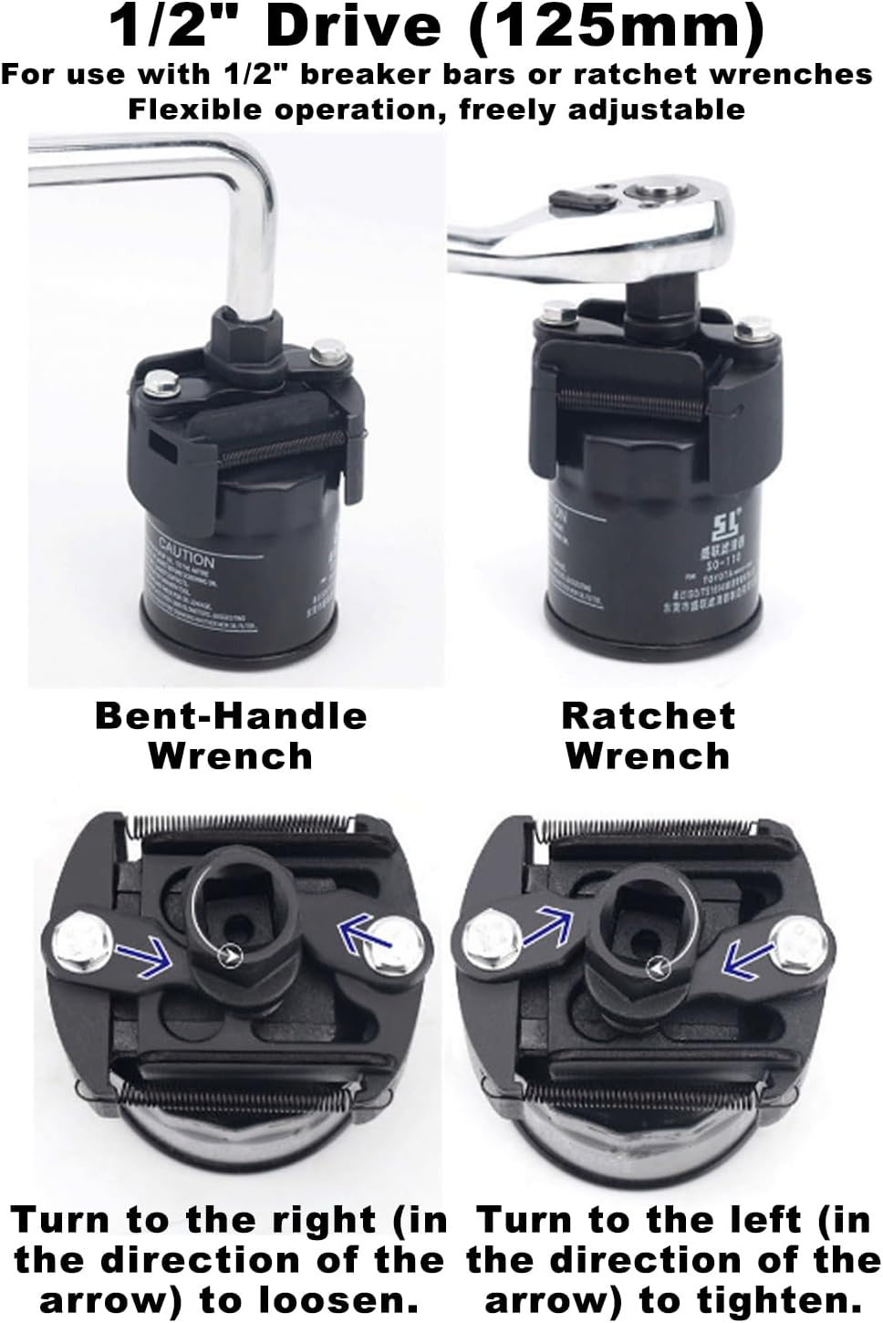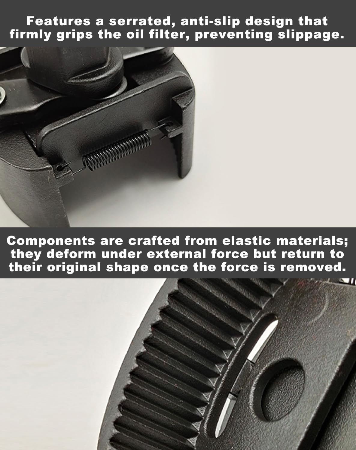 Adjustable Oil Filter Wrench - Universal 60mm-80mm Cap Toolfor Spin-On Filters Features: - High-Torque Grip: The jaw design provides a rock-solid hold to prevent slipping. - Compact Profile: Slim build allows access to filters in narrow or crowded engine bays. - Universal Drive: Operates with standard 1/2" square drive ratchets or 22mm wrenches. - Spring-Loaded Tech: Self-adjusting mechanism saves time when switching between vehicles. Specifications: Name: Adjustable Oil Filter Wrench Material: Chrome Vanadium Steel / High Carbon Steel Fit Range: 60–80 mm Optional Range: 80–105 mm Drive Size: 1/2 inch Wrench Size Compatibility: 22 mm Weight: 440 g Package Includes: 1PCS x Adjustable Oil Filter Wrench