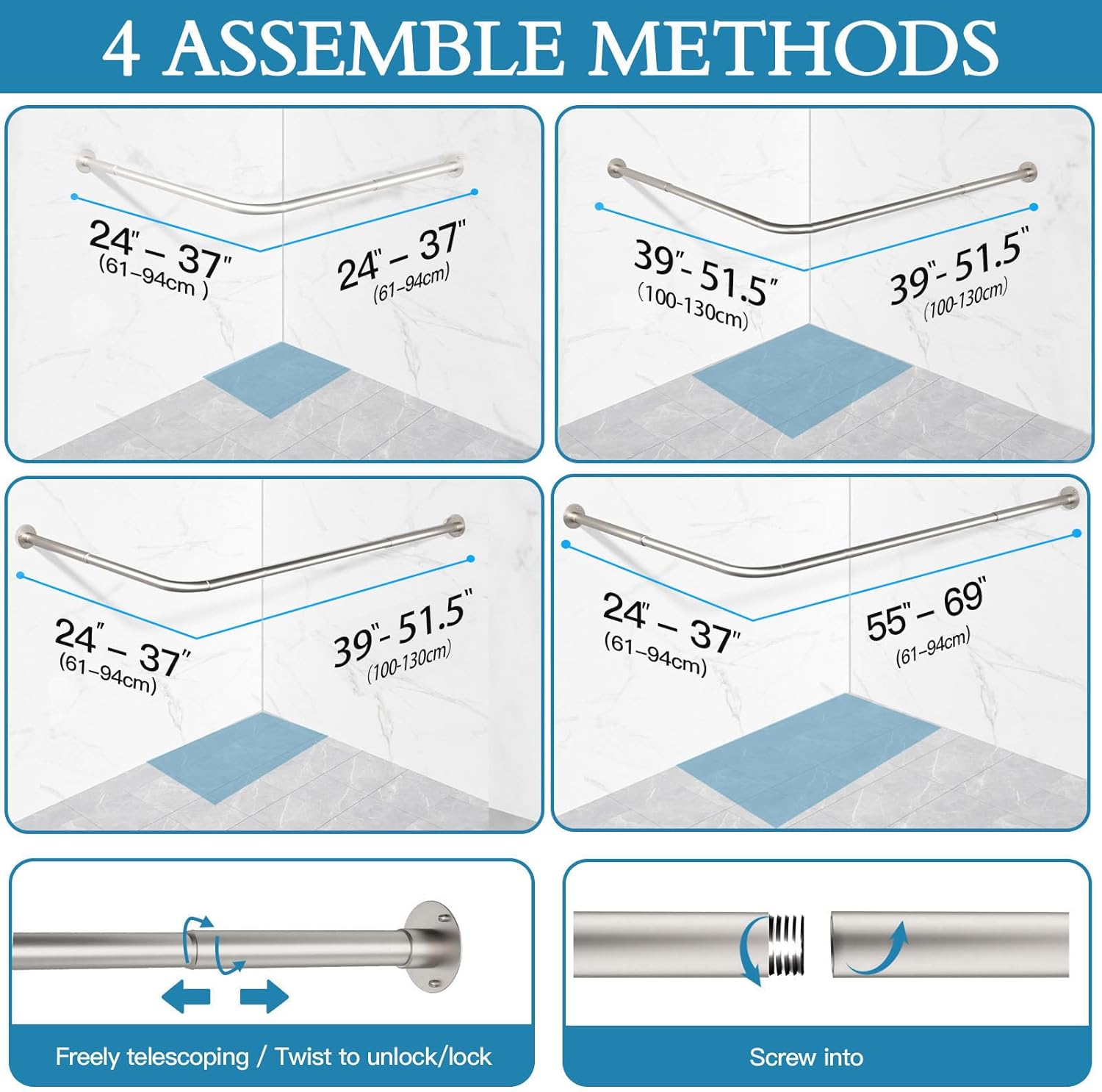| Included Components | 1*Ceiling Support, 1*L Shaped Shower Curtain Rod, 12*Ring Hooks |