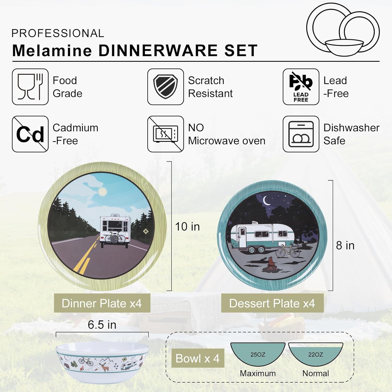 | Included Components | 4 pcs 6.5 inch creal/soup bowls, 4 pcs 10 inch dinner plates, 4 pcs 8 inch dinner plates. |