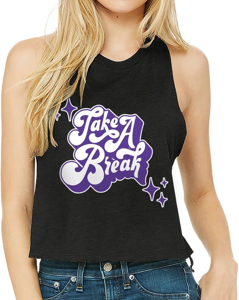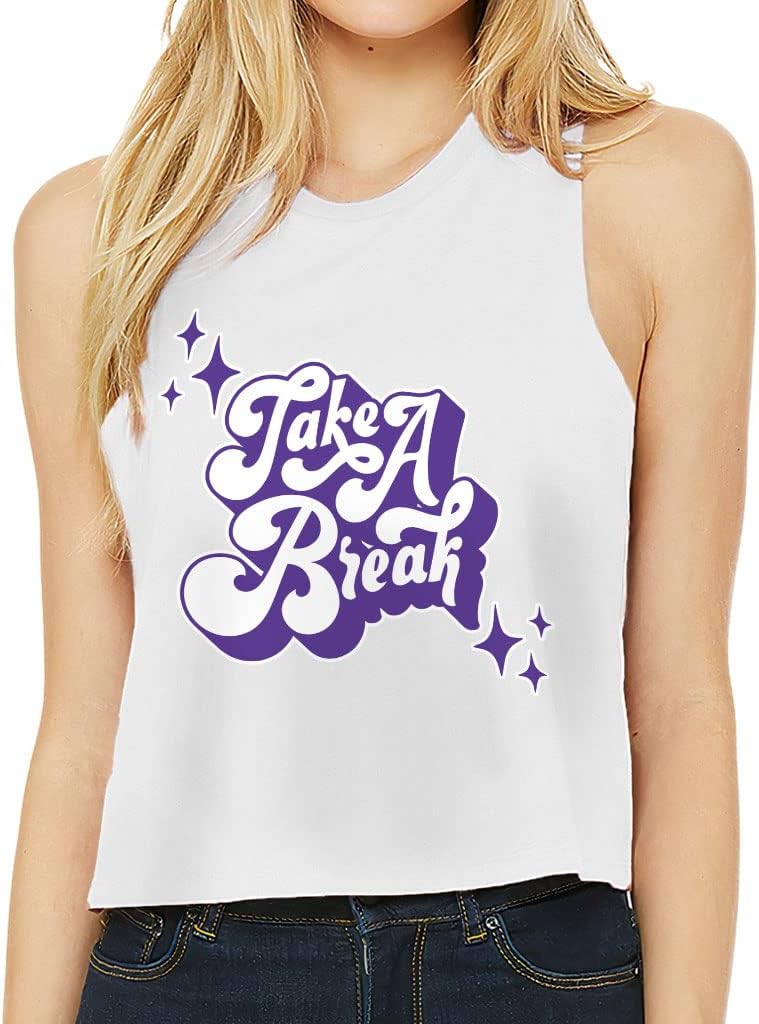 Cute and flattering Take a Break Racerback Cropped Tank is suitable for most indoor or outdoor activities, such as gym, yoga, running, hiking, beach or relaxing around the house. Pair Life Quotes Women's Tank with your favorite sports bras, especially strappy ones, and high-waisted leggings, then you will enjoy cool and comfortable exercise throughout the summer.