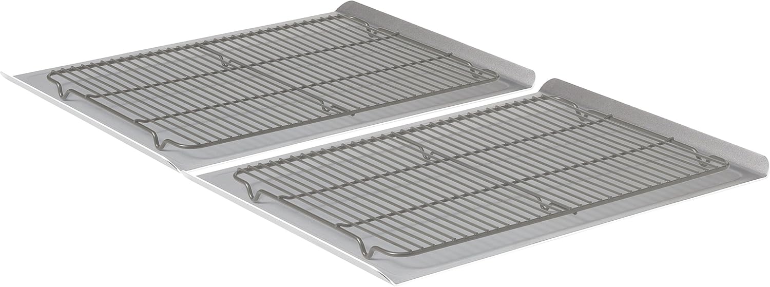 For cookies, dinner rolls or other baked goods, reach for an all-purpose cookie sheet from Calphalon. The two upturned ends are for lifting the cookie sheet; the open sides allow items to slide right off. Calphalon Nonstick Bakeware has interlocking nonstick layers to deliver high performance release. In fact, it releases up to 2 times better than Calphalon Classic Bakeware. Now, even the stickiest baked goods can be removed cleanly for beautiful results and easy cleanup.